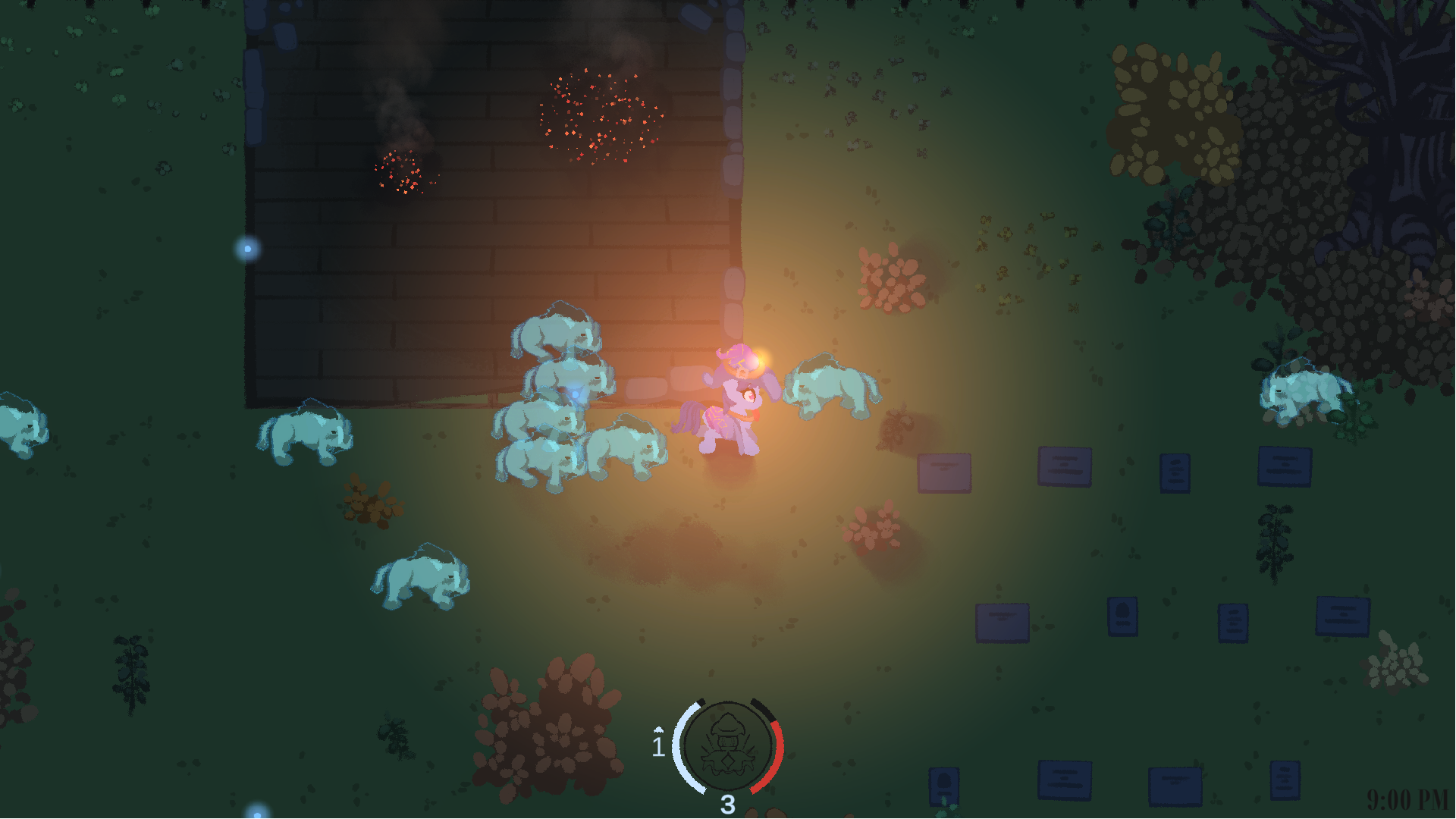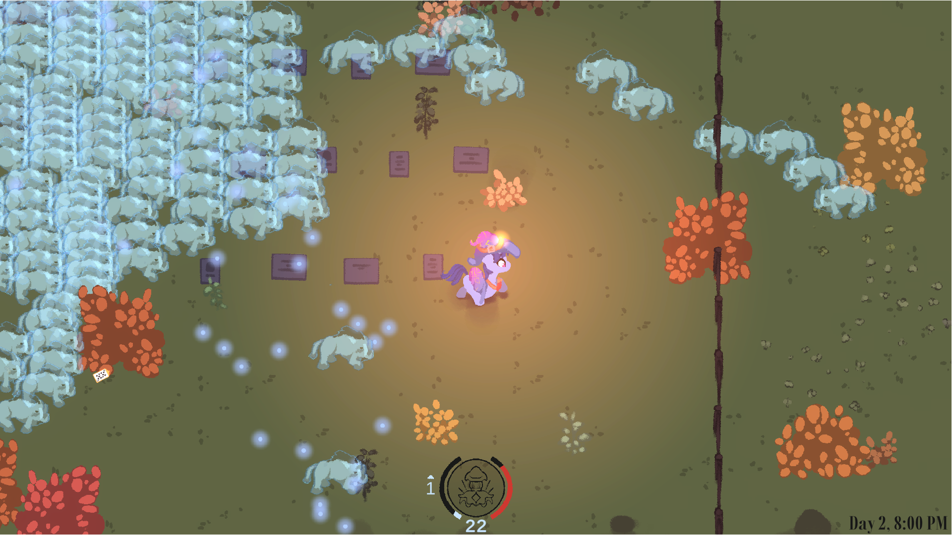 A round-based bullet heaven / auto-shooter I threw together in a month for Nightmare Night. It's built on the framework of Tales From the Herd, my upcoming pony life sim.